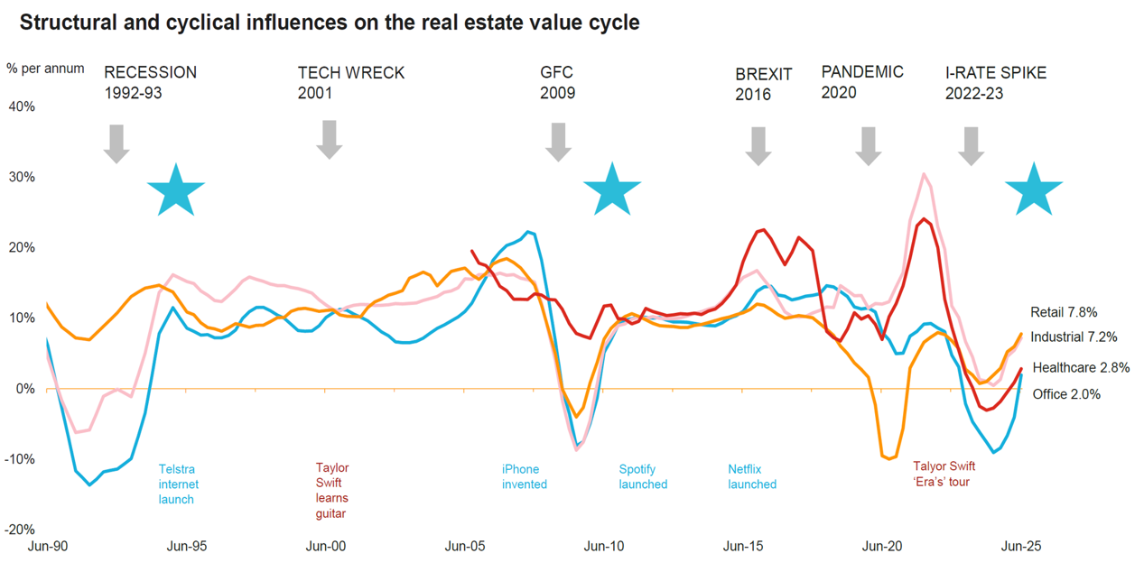 2026 is arguably the third ‘strong-buy’ point. Over the past 5 years, sharply rising interest rates and pandemic impacts have resulted in a significant downward pricing of Australian commercial property.